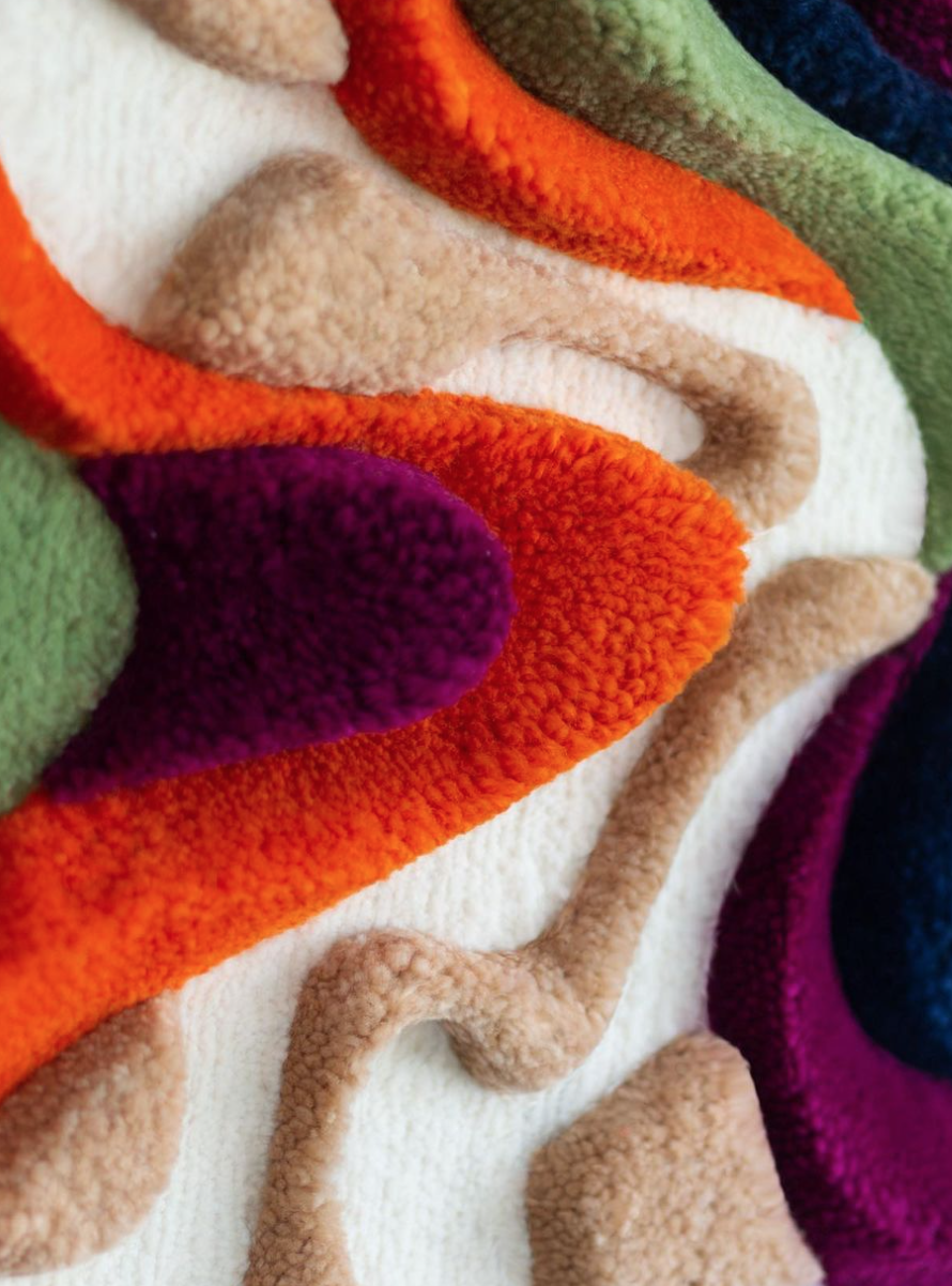 "When should a material be classified as waste? As a future focused designer, I am dedicated to developing sustainable practices. It is crucial that we take responsibility for the lifecycle of the things we design and make. The key process I developed involved mixing the shredded yarn with glue which could then be formed and moulded into various shapes. As circularity is a fundamental part of this project, I used an organic homemade glue. This allows the final material to be broken back down, by placing it in water, and reused potentially endless times. The material is lightweight, dries firm and has many possible applications. Driven by a strong interest in interior design I have used the material to create bold wall panels exploring colour and form and celebrating the natural surface texture created by the yarn fibres. Further embellishment has been added with a range of sewing and mixed media techniques embedded within or added to the surface." Sandra Junele